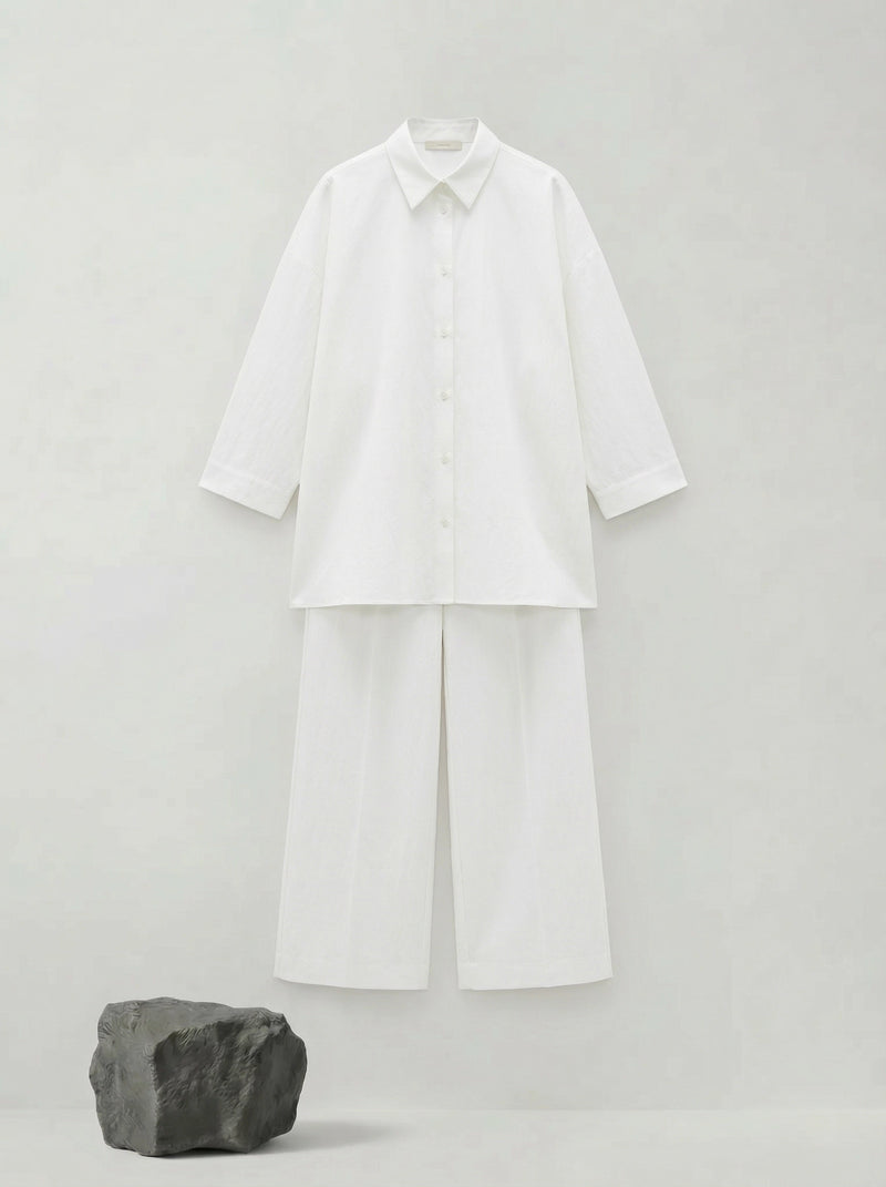Formal events, gallery openings, evening dinners. The coordinated white set makes a statement of sculptural elegance.