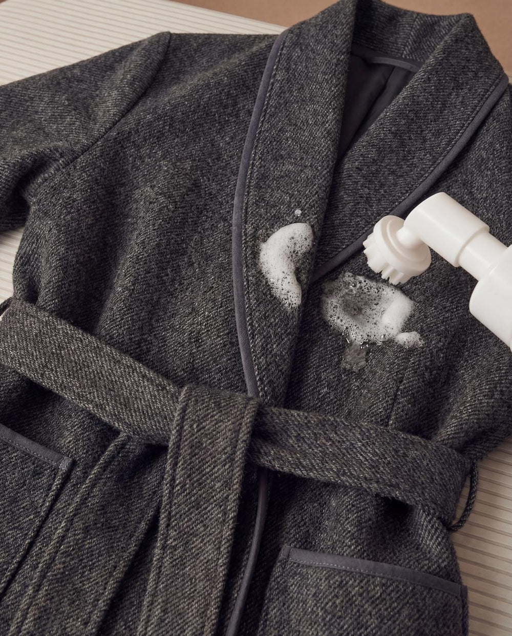 Finish quietly: hand-feel calibrated to be close to the body but not sticky, leaving only clean lines when walking.