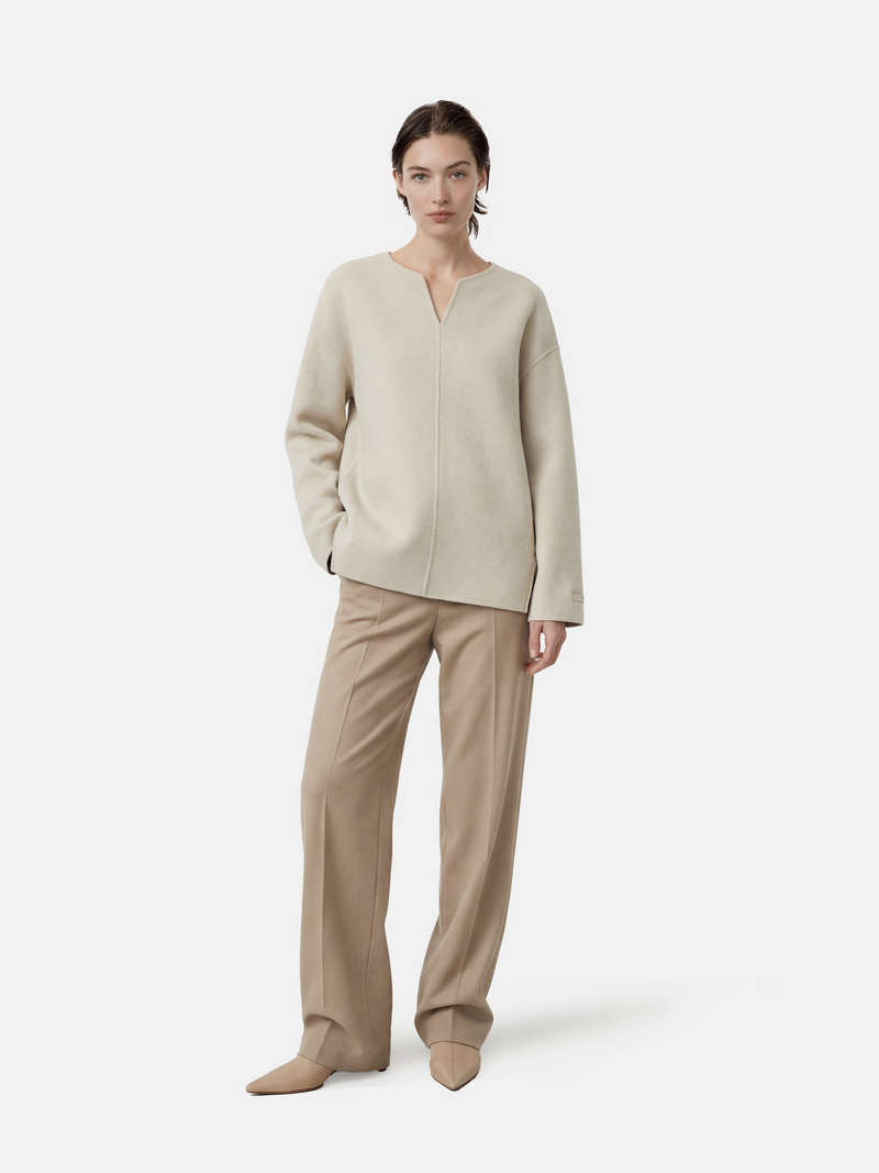 Cool city days and layered interiors—when you want warmth that stays refined, and a neckline that frames the face with quiet ease.